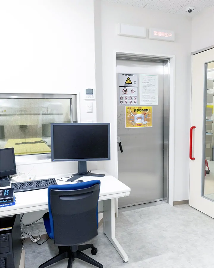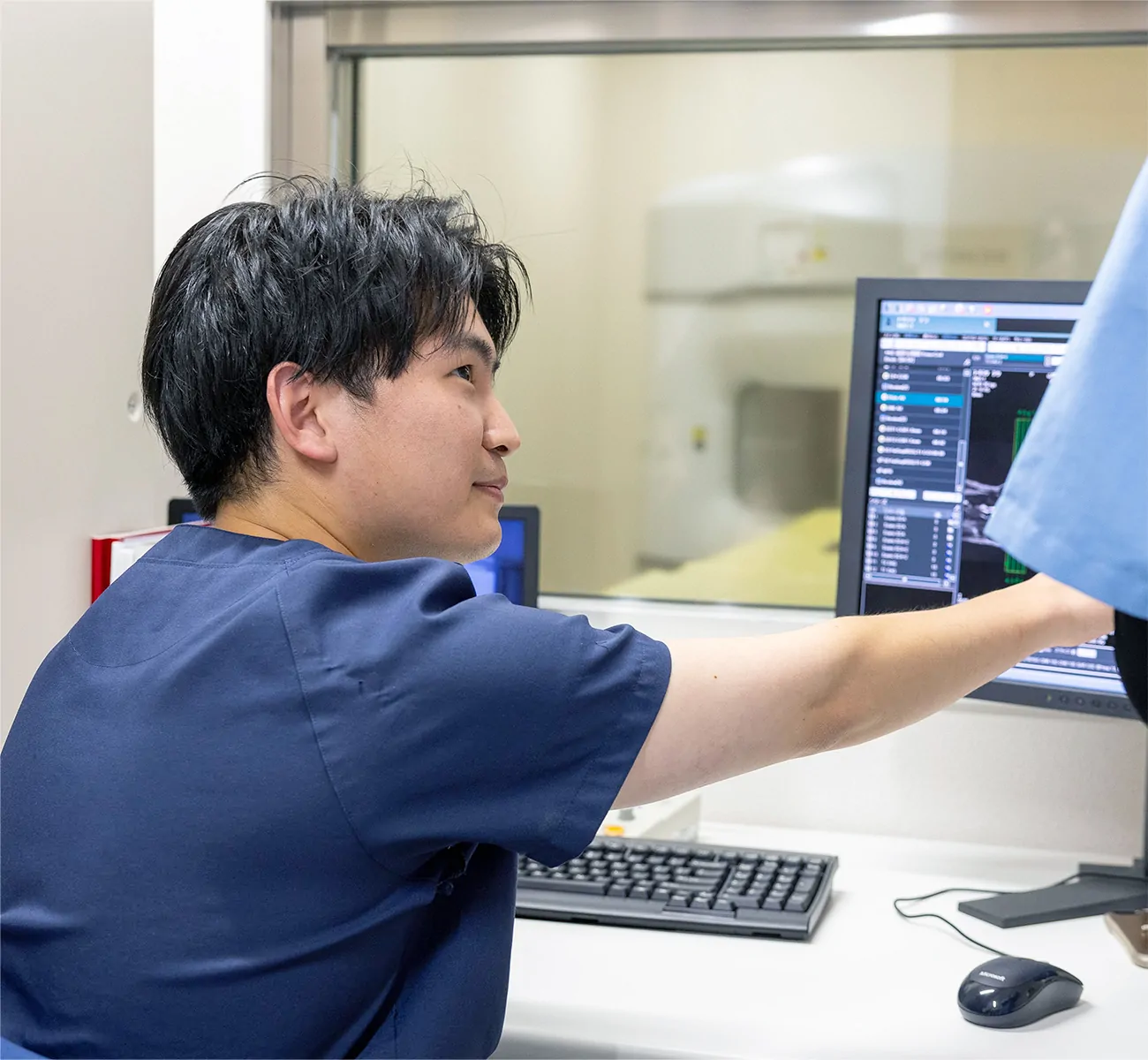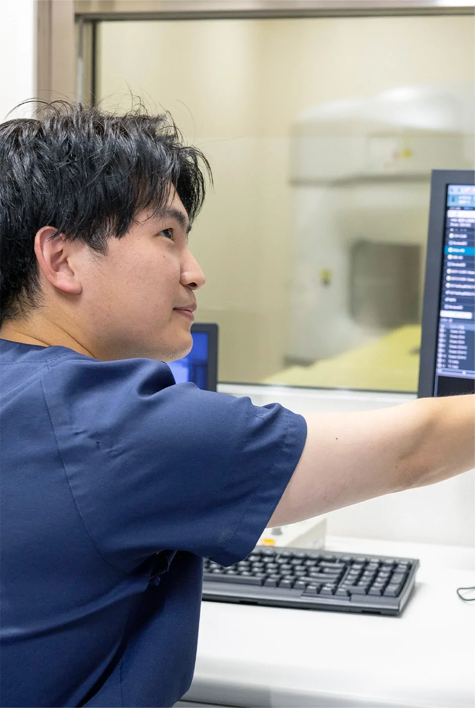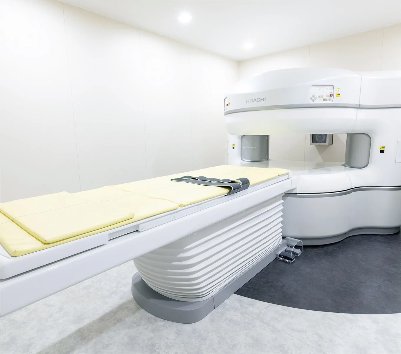 MRI検査は、強力な磁場と電波を利用して体内の断層画像を得る検査で、X線を使わずに非侵襲的に、より詳細な内部構造を可視化できるのが特長です。