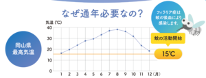 温暖化の影響:近年の岡山県では最高気温が1年中15℃以上を記録しており、